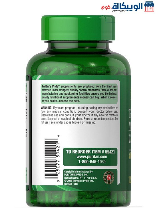- تحتوي عبوة triple magnesium complex puritan’s pride على 120 قرص.