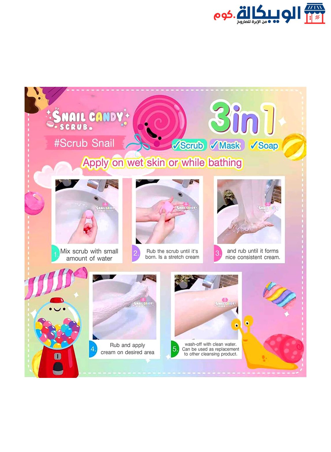 اشتري الآن سكراب سنيل كاندي – Jellys Snail Candy Scrub بسعر متميز واستمتع بأفضل العروض لدى الويبكالة Elwebkala، وذلك من خلال تواصلك معنا عبر الرقم التالي 01000629188