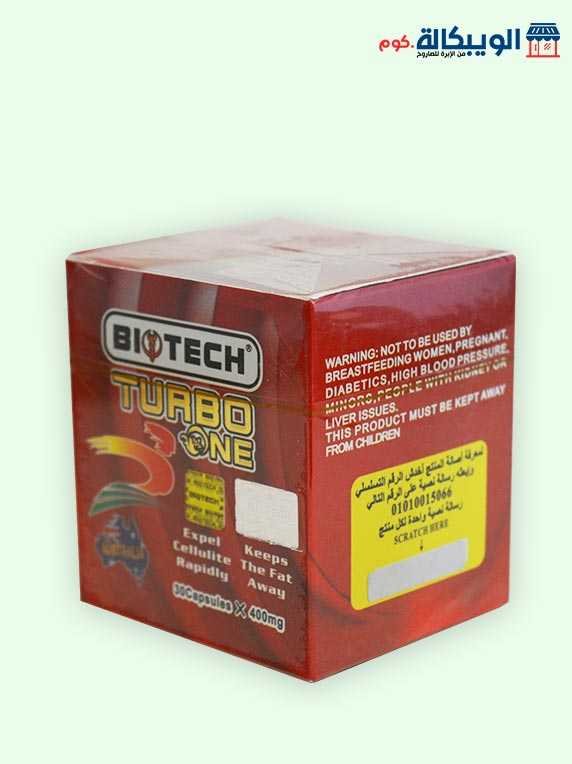 كبسولات تيربو وان للتخسيس turbone اخر اصدرات شركة بايوتك الاستراليه، يساعد علي حرق الدهون و يحفز عملية الايض و تنظيم حركة الامعاء، تحتوي على مزيج فريد من المكونات الطبيعية الغنية بالعناصر الغذائية، الفيتامينات، والمعادن التي تعزز سد الشهية وتحقق الشعور بالامتلاء والشبع لفترات طويلة، مما يساعد في التحكم في الرغبة في تناول الطعام، يعزز تيربو وان الاصلي أيضًا عملية الأيض لتحسين هضم الطعام والتخلص من الدهون الزائدة والمتراكمة في الجسم.